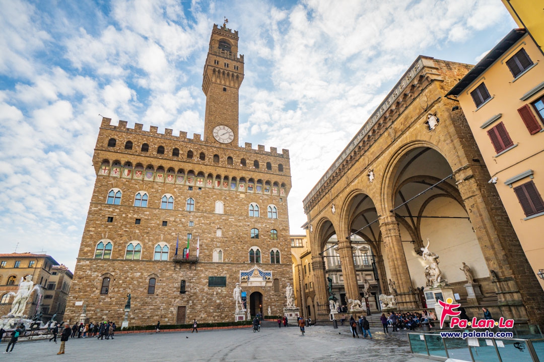 จัตุรัส Piazza della Signoria มีสัญลักษณ์คือหอคอยพระราชวัง Palazzo Vecchio
