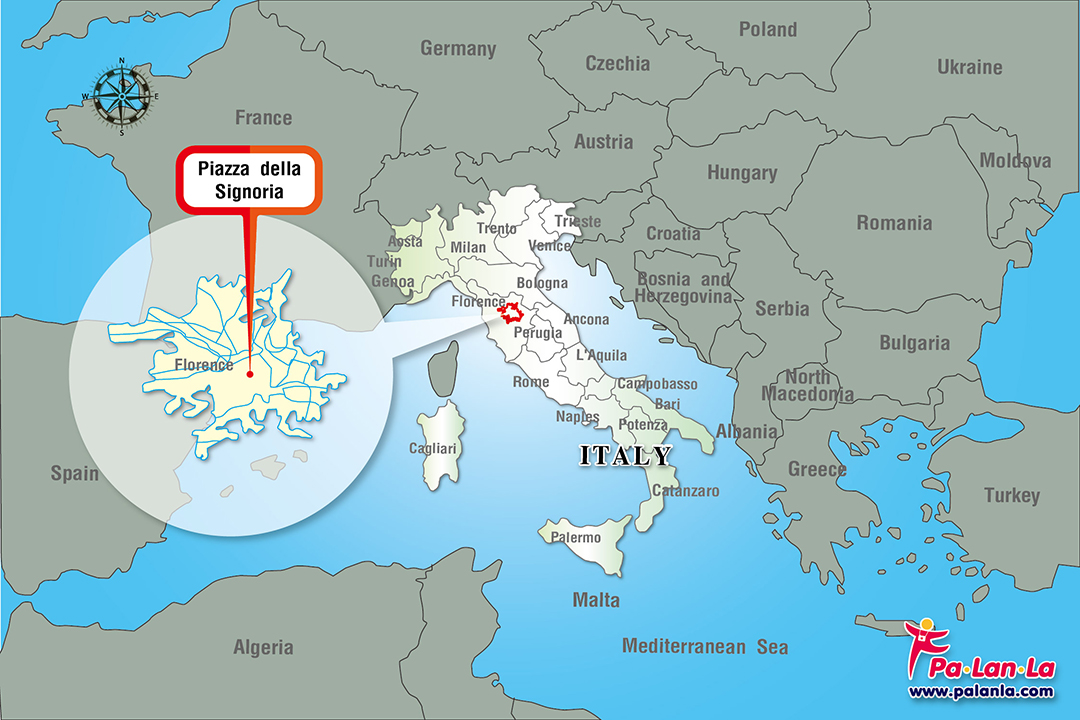 สถานที่ตั้ง : จัตุรัสเปียซซาเดลลาซิญญอเรีย เมืองฟลอเรนซ์ แคว้นทัศคานี, ประเทศอิตาลี