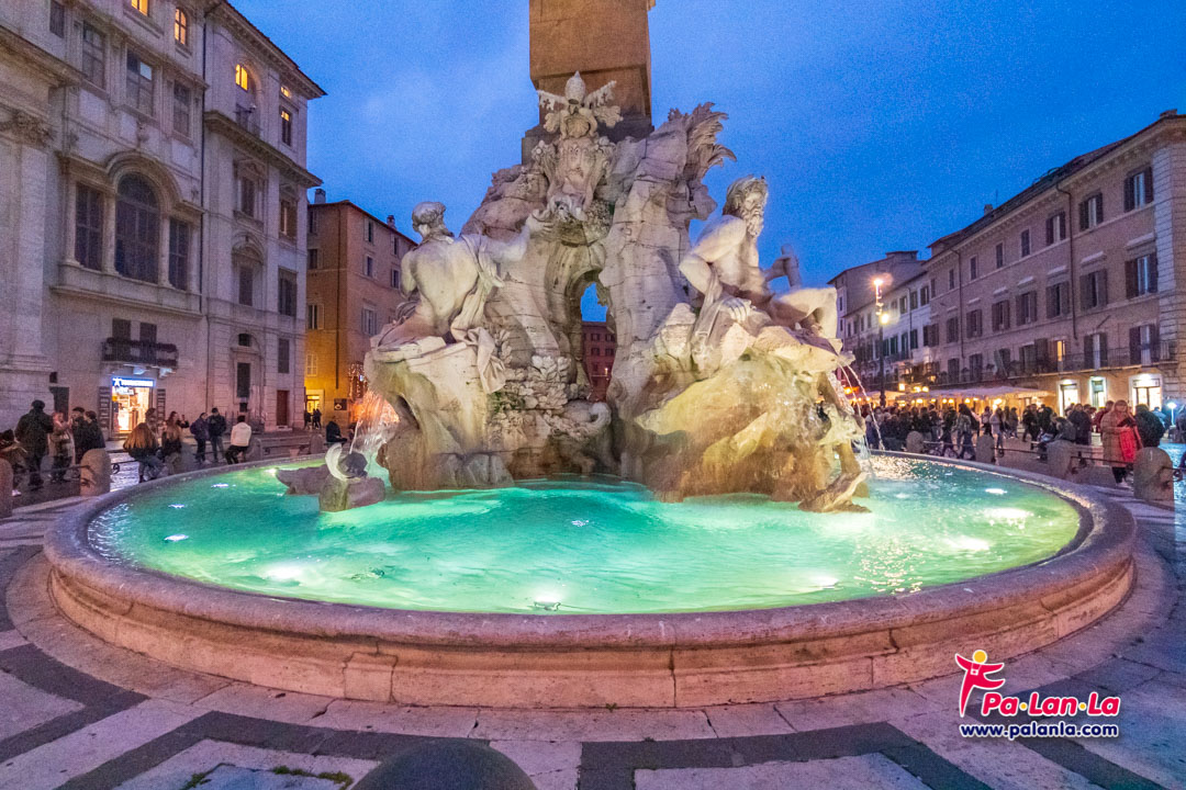 จัตุรัส นาโวน่าเป็นจัตุรัสที่ได้ชื่อว่าเป็นจัตุรัสที่มีชื่อเสียงที่สุดและสวยงามที่สุดแห่งหนึ่งในกรุงโรมที่เปี่ยมไปด้วยความมีชีวิตชีวา เต็มไปด้วยนักท่องเที่ยวจากทั่วสารทิศ รวมถึงศิลปินหลากหลายสาขาที่ใช้พื้นที่บริเวณนี้สำหรับการจัดแสดงโชว์ ซึ่งสร้างชีวิตชีวาและเป็นสีสันให้กับกรุงโรมได้อย่างดีเยี่ยม รอบๆ จัตุรัสแห่งนี้ยังรายล้อมไปด้วยน้ำพุสวยๆ หลายจุด โดยน้ำพุที่โดดเด่นที่สุดและเป็นเอกลักษณ์ของจัตุรัสแห่งนี้ก็คือน้ำพุจตุมหานที ซึ่งเป็นน้ำพุที่ตั้งโดดเด่นใจกลางจัตุรัส โดยประกอบไปด้วยรูปปั้นที่เป็นตัวแทนของการแสดงถึงแม่น้ำสายสำคัญของทั้ง 4 ทวีปได้แก่ แม่น้ำคงคา แม่น้ำไนล์ แม่น้ำดานูป และแม่น้ำพลาต้า ซึ่งเป็นที่มาของชื่อจตุมหานทีนั่นเอง ซึ่งเหนือน้ำพุจตุมหานทีขึ้นไปเป็นเสาโอเบลิกส์ (Obelisk) จากประเทศอียิปต์ ซึ่งเป็นเสาแบบเดียวกับเสาที่ตั้งอยู่ด้านหน้า Sant’ Agnese โบสถ์สไตล์บาร็อกอันงดงาม