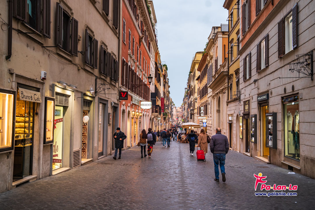 ถนน Condotti Street เป็นย่านใกล้เคียงของบันไดสเปนที่มีความคึกคักเนื่องจากเรียงรายด้วยร้านสินค้าแบรนด์ดังต่างๆ มากมาย