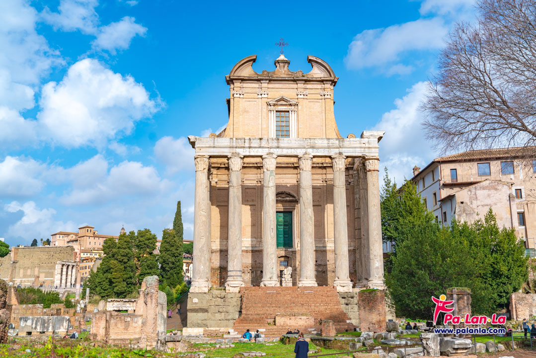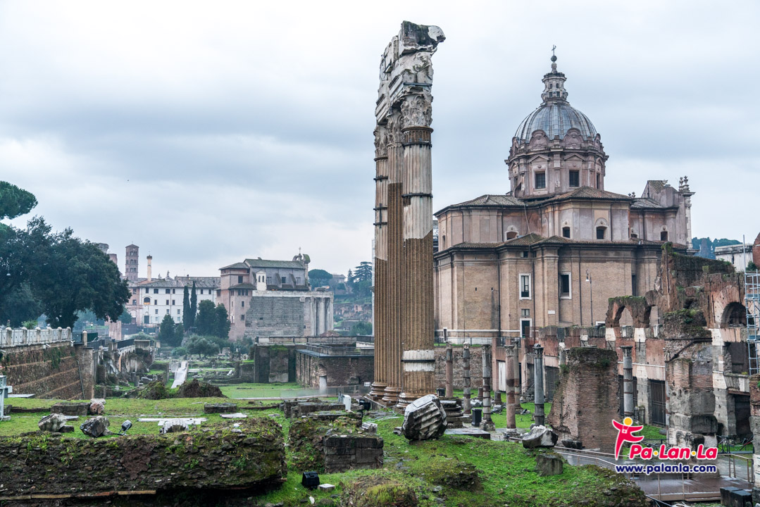 บริเวณรอบๆ โรมันฟอรัม และขวามือคือโบสถ์ซานติลูคา เอ มาร์ตินา (Santi Luca e Martina)