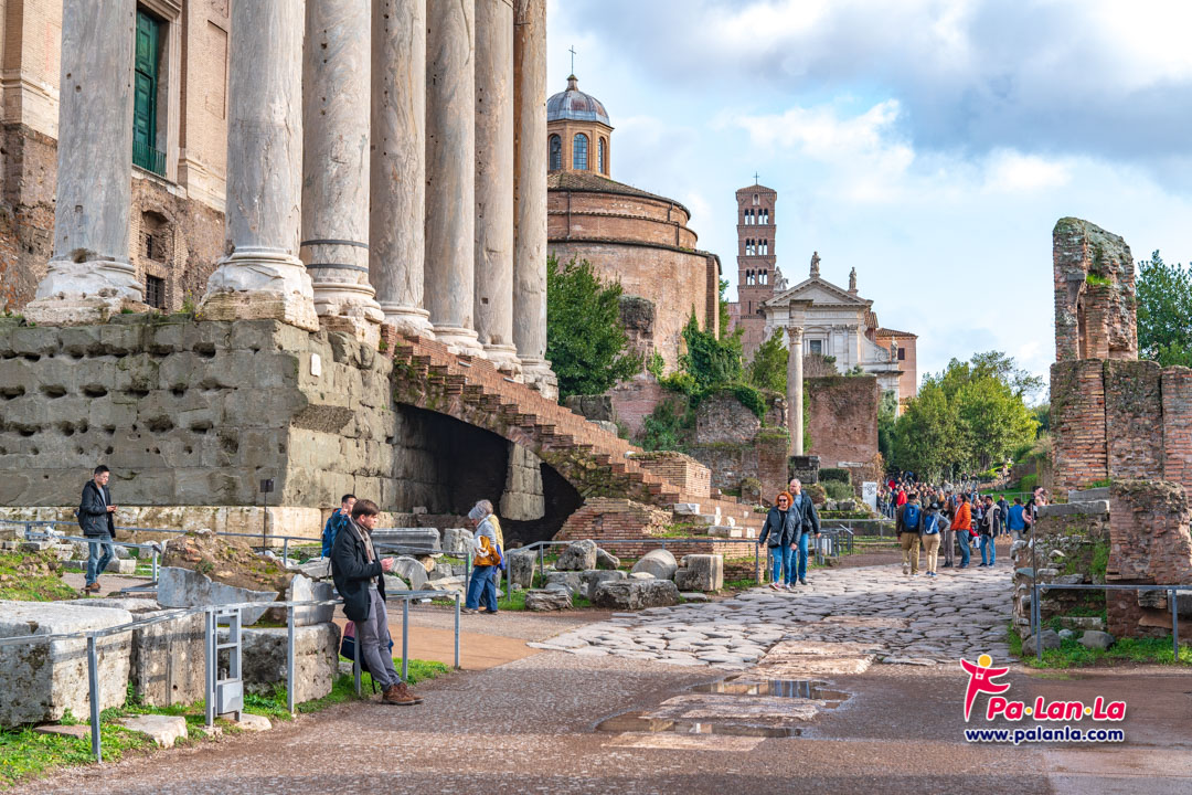 บรรยากาศนักท่องเที่ยวที่มาเที่ยวชมโรมันฟอรัม