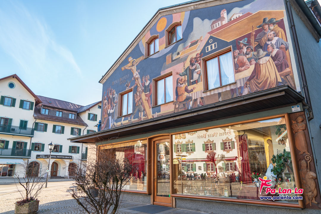 อาคารสีขาวเหลืองนี้คือ พิพิธภัณฑ์โอเบอแรมเมอร์เกา (Oberammergau Museum)