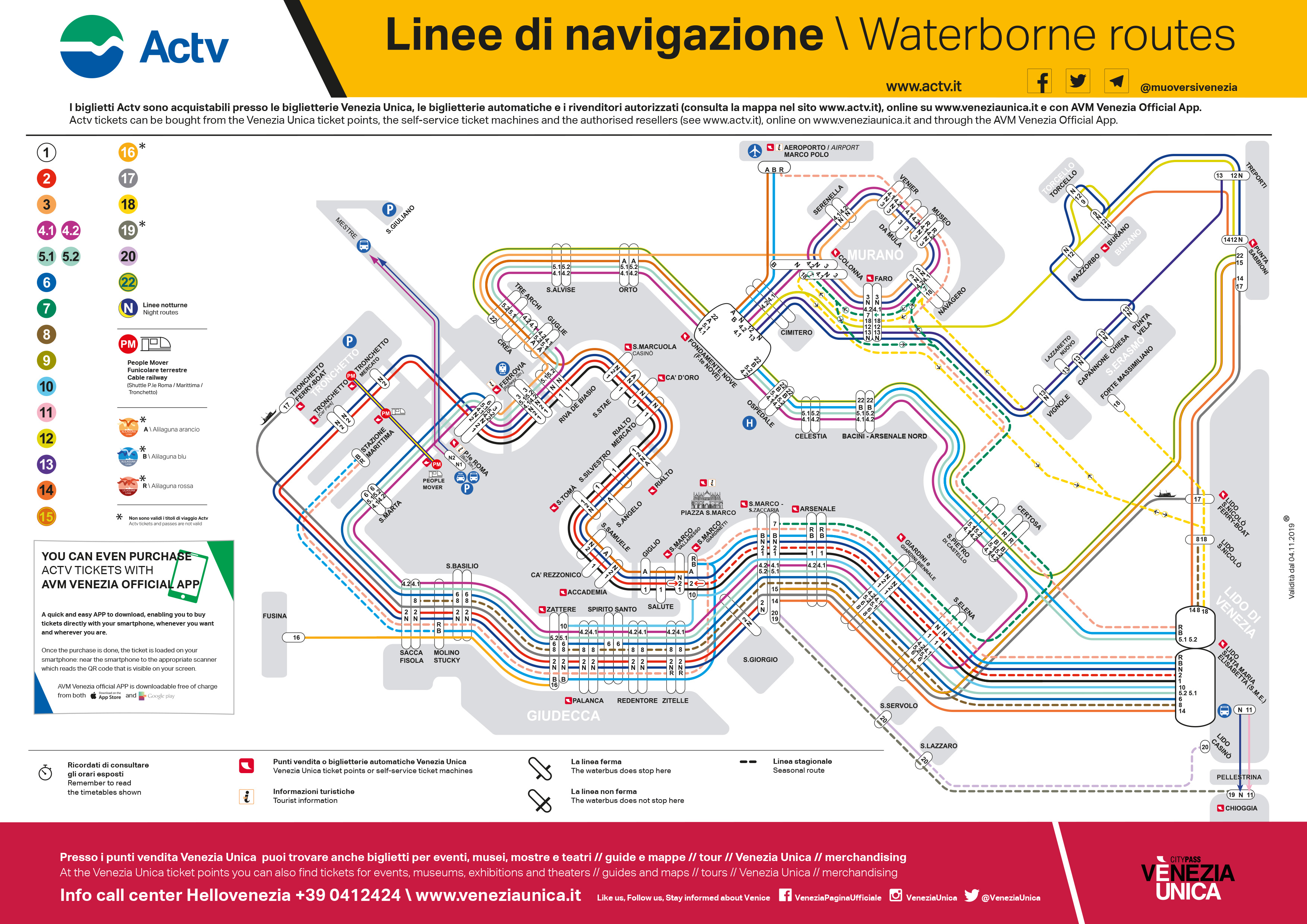 - ใช้เดินทางโดย Water-bus ภายในเกาะหลักของตัวเมืองเวนิสเท่านั้น ไม่ครอบคลุมเส้นทางไปยังเกาะอื่นๆ ของเมืองเวนิส