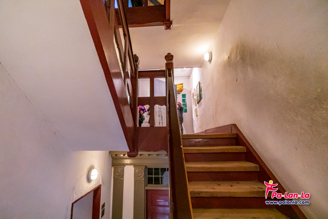 บันไดไม้ทางเดินขึ้นสู่ชั้นบน
