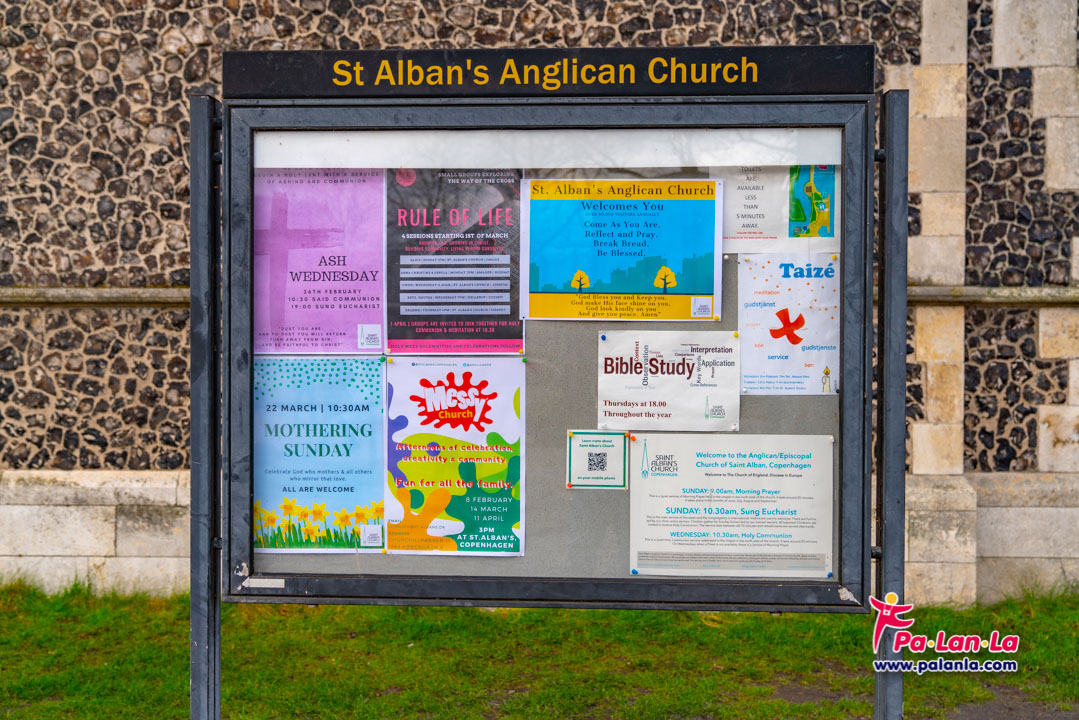พื้นที่ติดประกาศประชาสัมพันธ์ข่าวสารต่างๆ บริเวณด้านนอกอาคาร St Alban’s Anglian Church
