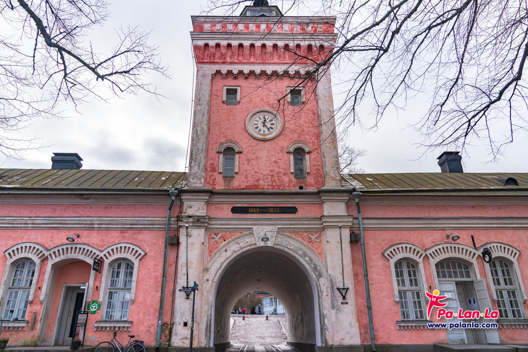 อาคาร Rantakasarmi (Jetty Barracks) สีชมพูอันโดดเด่นหลังนี้ เป็นหนึ่งในอาคารที่ได้รับการอนุรักษ์ไว้อย่างดีที่สุดจากยุคจักรวรรดิรัสเซีย