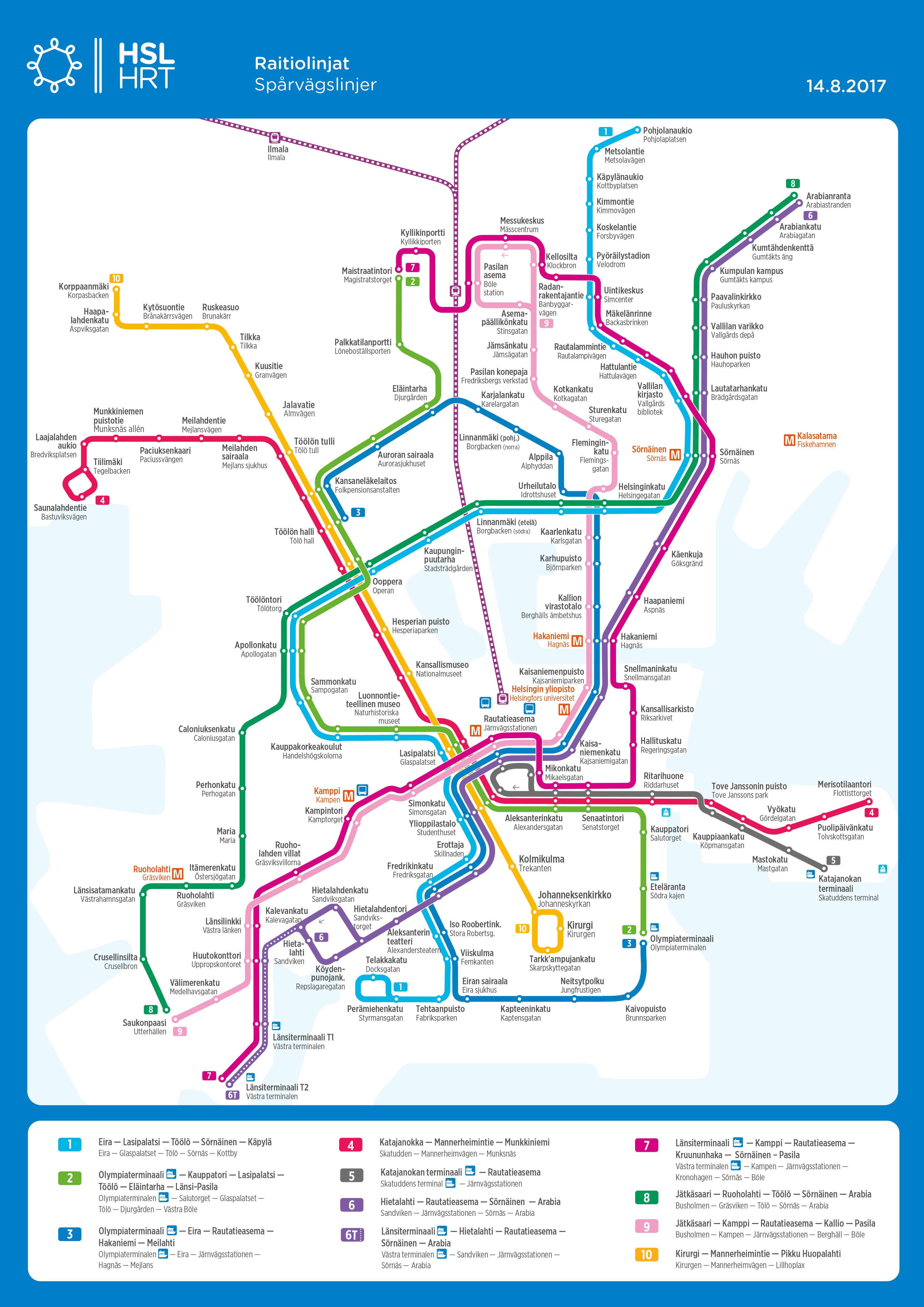 แผนที่แสดงระบบขนส่งสาธารณะเมืองเฮลซิงกิ ขอบคุณภาพประกอบจาก https://www.hsl.fi/en