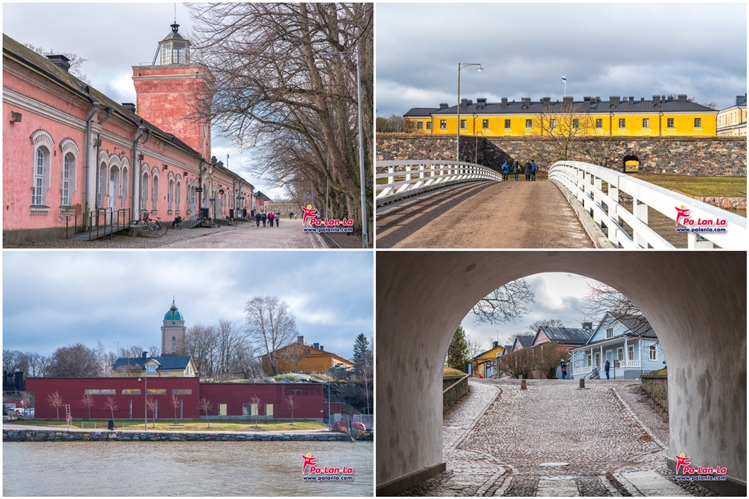 - เรือเฟอร์รี่ (Ferry) จากสถานีรถไฟกลางเฮลซิงกิ (Helsinki Central Station) นักท่องเที่ยวจะต้องเดิน (ประมาณ 800 เมตร) ไปขึ้นเรือเฟอร์รี่สาย Kauppatori - Suomenlinna/Salutorget – Sveaborg ที่ท่าเรือ Salutorget นั่งไปลงที่ท่าเรือ Suomenlinna, Main Quay ใช้เวลาเดินทางประมาณ 20 นาที ค่าโดยสารเรือ 2.8 ยูโร สามารถซื้อตั๋วได้จากตู้ที่อยู่ด้านหน้าท่าเรือได้เลย