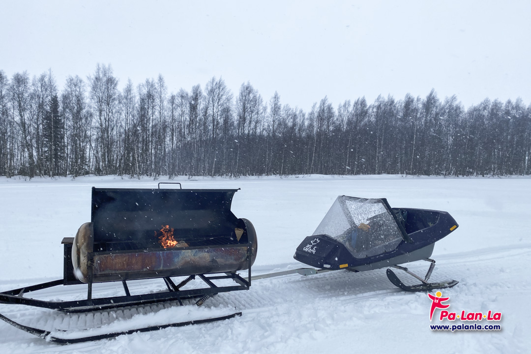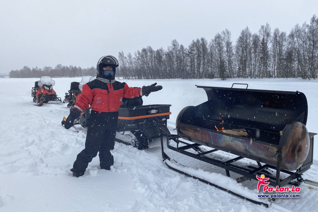 โดยเมื่อตกปลาได้ ปลาสดๆ เหล่านี้ก็จะถูกนำมาย่างเป็นอาหารกลางวันสำหรับลูกทัวร์ หรือหากใครที่ไม่ต้องการรับประทานปลาก็มีอาหารจำพวกไส้กรอกย่างเช่นกัน ระยะเวลาในการออกไปทัวร์ Snowmobile Safari & Ice Fishing นี้รวมประมาณ 2 ชั่วโมง และมีระยะทางจากจุดเริ่มต้นราว 20 กิโลเมตร