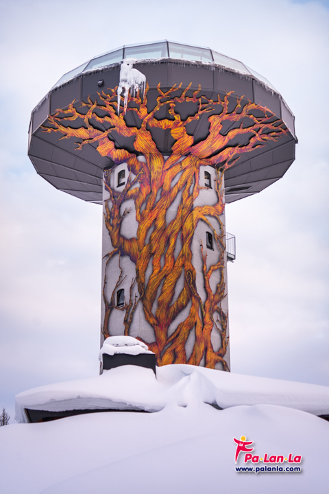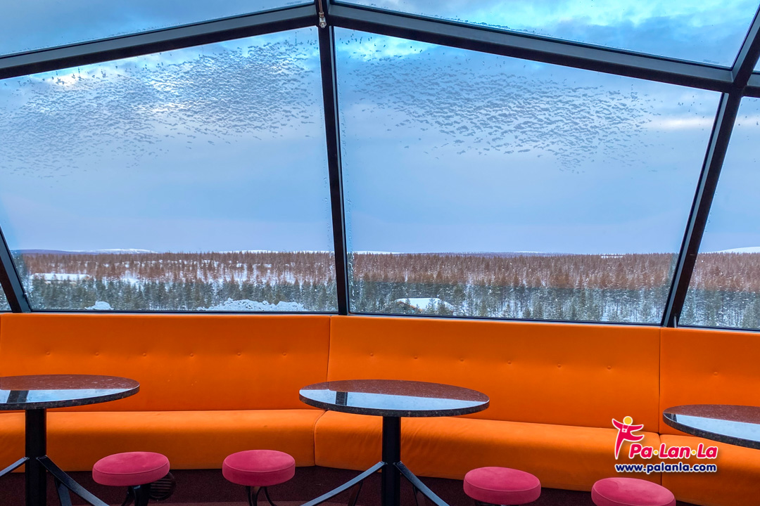 นอกจากชมผลงานศิลปะแขนงต่างๆ ที่น่าสนใจที่จัดแสดงอยู่ภายในอาร์ต แกลเลอรี่แล้ว สิ่งที่ไม่ควรพลาดอีกอย่างเมื่อไปเที่ยว Kakslauttanen Art Gallery ก็คือการขึ้นไปชมวิวสวยๆ จากบนหอคอย Igloo Tower
