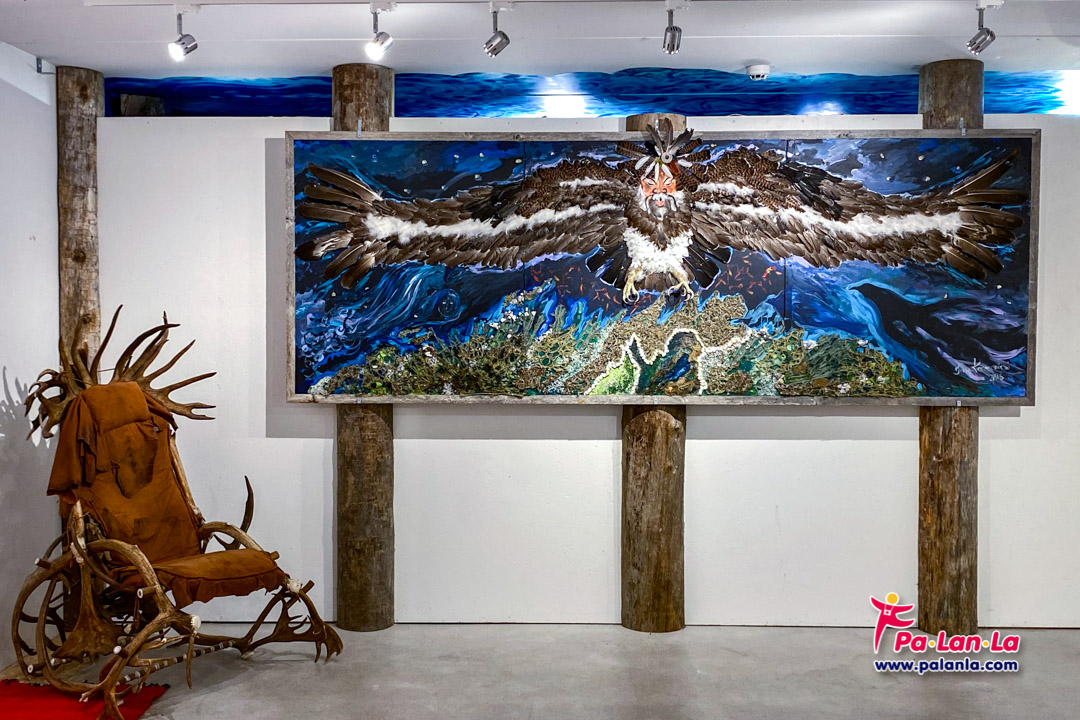 ผลงานศิลปะที่สื่อถึงความเป็นแลปแลนด์ที่จัดแสดงอยู่ภายใน คาคสเลาท์ทาแนน อาร์ต แกลเลอรี