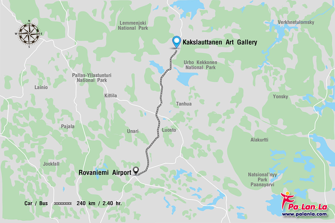 การเดินทางจาก Rovaniemi Airport ไป Kakslauttanen Art Gallery