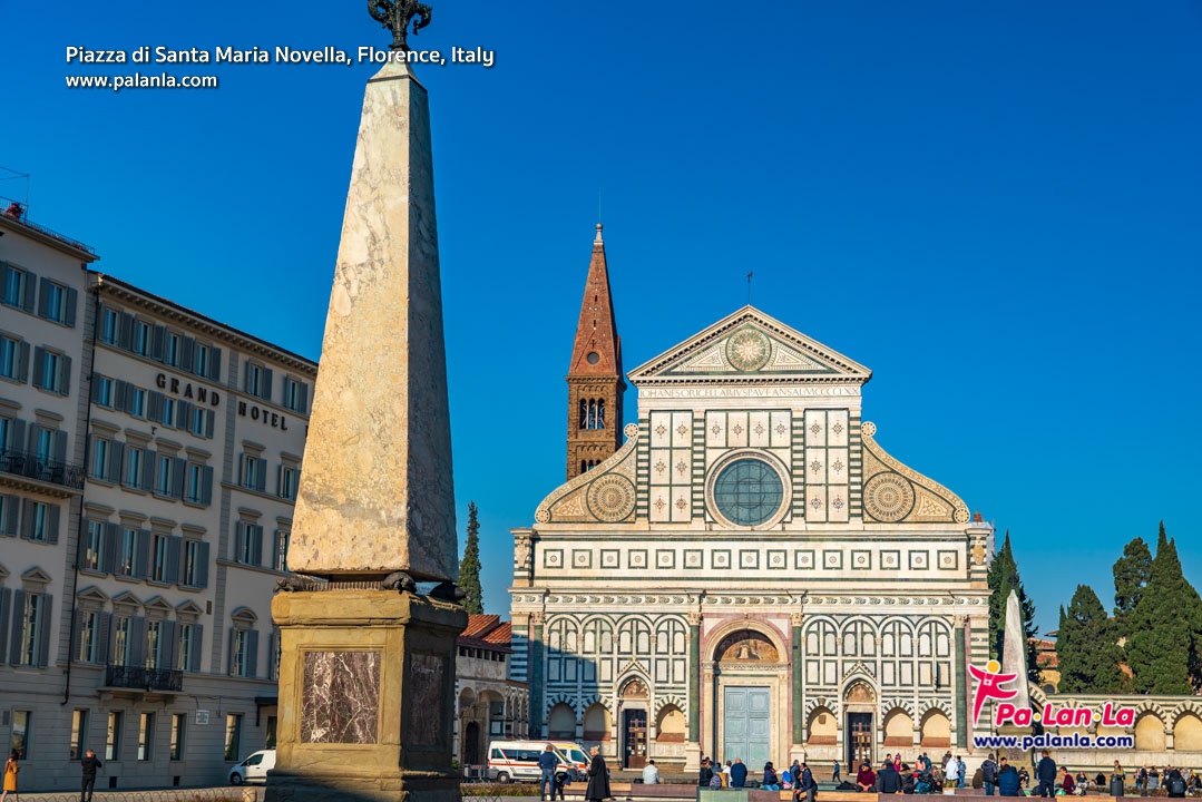จัตุรัสเปียซซา ดิ ซานตา มาเรีย โนเวลลา (Piazza di Santa Maria Novella) จัตุรัสสำคัญใจกลางเมืองฟลอเรนซ์ เป็นที่ตั้งของสถานีรถไฟกลาง Firenze Santa Maria Novella ศูนย์กลางการคมนาคมของเมือง ห่างจากมหาวิหารซานตา มาเรีย โนเวลลา (Basilica di Santa Maria Novella) ที่ได้ชื่อว่ามี Façade หน้ามหาวิหารที่สวยงามที่สุดในอิตาลีเพียง 290 เมตร ตัววิหารทำจากหินอ่อนสีขาว เขียว และชมพู ภายในมีแท่นบูชา Crucifix ที่มีชื่อเสียง ผลงานของฟิลิปโป บรูเนลเลสกี (Filippo Brunelleschi) และจ๊อตโต (Giotto), ภาพเขียนสีปูนเปียก The Holy Trinity ของมาซัซโซ (Masaccio) และภาพ Life of the Virgin ของโดเมนิโค กิลันดายโย (Domenico Ghirlandaio) อีกด้านของจัตุรัสเป็นอาคารพิพิธภัณฑ์การถ่ายภาพ Museo Nazionale Alinari della Fotografia ที่จัดแสดงประวัติศาสตร์ภาพถ่ายและกล้องถ่ายรูปให้ได้ชมด้วย