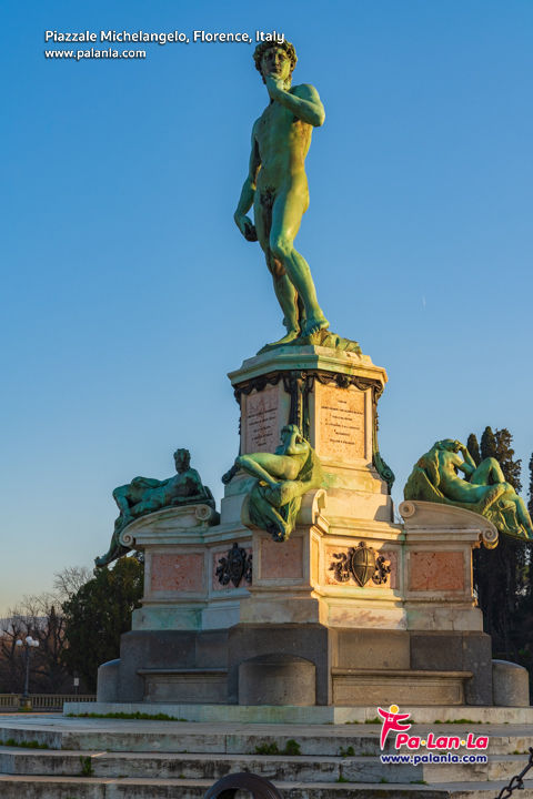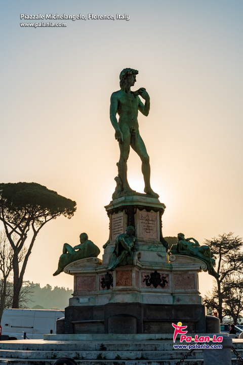 เปียซซาเล มิเคลันเจโล (Piazzale Michelangelo) ลานบนเนินเขาบริเวณจัตุรัสมิเคลันเจโล ในอำเภอโอลตราโม (Oltrarno) ทางตอนใต้ของเมืองฟลอเรนซ์ สร้างขึ้นในปี ค.ศ. 1869 ออกแบบโดยสถาปนิกจูเซปเป้ ป๊อกกี้ (Giuseppe Poggi) อยู่ทางฝั่งซ้ายแม่น้ำอาร์โนซึ่งเป็นทางคดเคี้ยวขึ้นเนินเขา San Miniato และมีถนน Viale dei Colli ขนาดกว้าง 6 เลน ยาว 8 กิโลเมตร มุ่งสู่จัตุรัสมิเคลันเจโล อันเป็นที่ตั้งรูปปั้นสัมฤทธิ์ David (จำลอง) ที่ฐานมีสัญลักษณ์ทั้งสี่ คือ Day, Night, Dawn, Dusk แบบเดียวกับที่ Medici Chapels ภายในมหาวิหารซาน โลเร็นโซซึ่งเป็นผลงานของมิเคลันเจโล รูปปั้นนี้ได้ถูกนำมาตั้งไว้เมื่อวันที่ 25 มิถุนายน ปี ค.ศ. 1873
