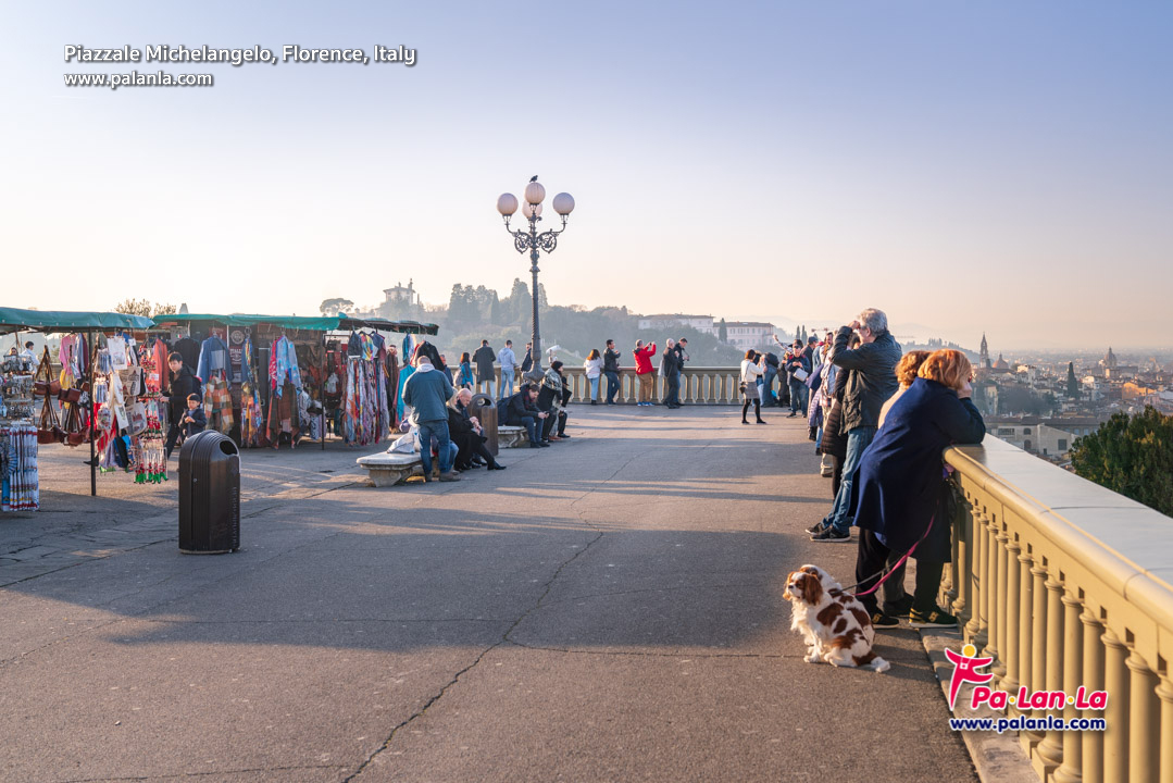 เปียซซาเล มิเคลันเจโล (Piazzale Michelangelo) ลานรูปปั้น David (จำลอง) อีกแห่งหนึ่งที่ยืนตระหง่านอยู่บนเนินเขาอันเป็นจุดชมวิวเมืองฟลอเรนซ์ที่มีชื่อเสียง จากจุดนี้สามารถมองเห็นไฮไลท์ของเมืองได้เกือบทั้งหมด ไม่ว่าจะเป็นโดมอิฐสีส้มของมหาวิหารฟลอเรนซ์ พระราชวังปิตติ พระราชวังเวคคิโอ สะพานเวคคิโอ สะพานเก่าแก่ที่สุดที่รอดพ้นจากการทำลายในสงครามโลกครั้งที่ 2 ทอดข้ามแม่น้ำอาร์โนที่ไหลผ่านกลางเมืองโดยมีทิวเขาอยู่เบื้องหลัง เป็นภาพที่สวยงามน่าประทับใจทั้งเวลากลางวันและกลางคืน