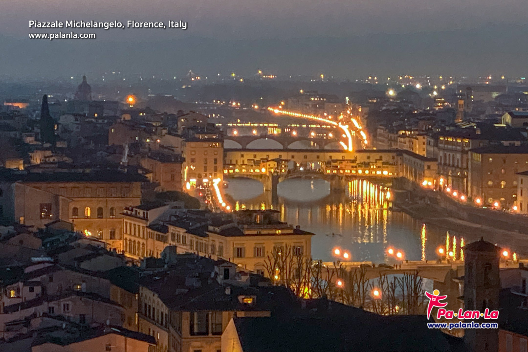 จุดชมวิวเมืองฟลอเรนซ์ยามค่ำบริเวณจัตุรัส Piazzale Michelangelo