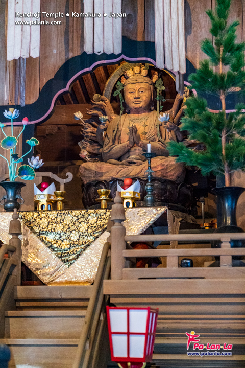 พระพุทธรูปพระโพธิสัตว์คันนอนพันกร หรือเซ็นจู คันนอน (Senju Kannon) ที่ประดิษฐานอยู่ภายในหอปฏิบัติธรรมฮัตโตะ