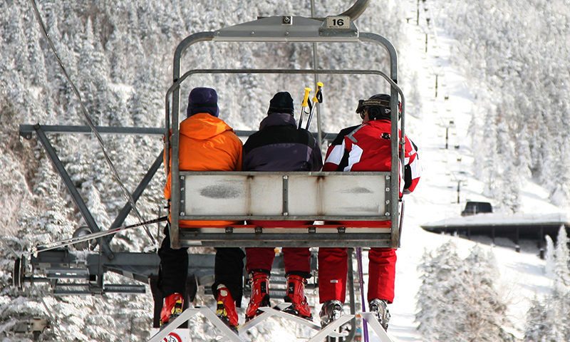 นักสกีกำลังโดยสารลิฟต์กระเช้าไฟฟ้า (ขอขอบคุณภาพจาก https://www.shigakogen-ski.com/en )