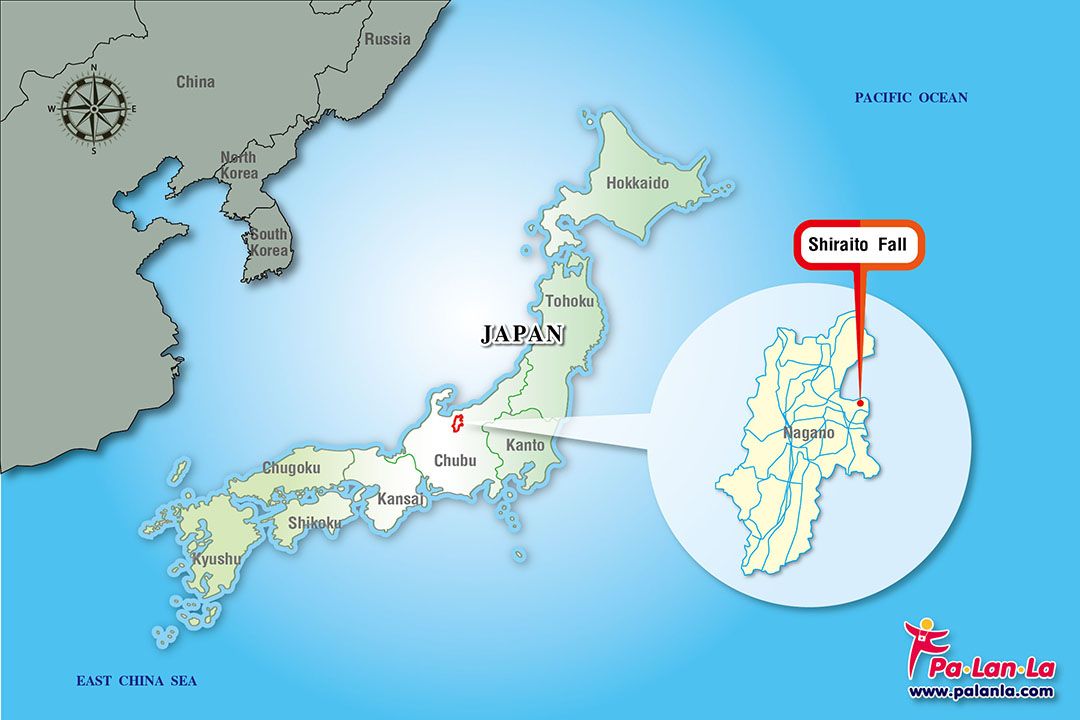 แผนที่ตั้ง น้ำตกชิไรโตะ (Shiraito Fall) จังหวัดนากาโนะ ประเทศญี่ปุ่น