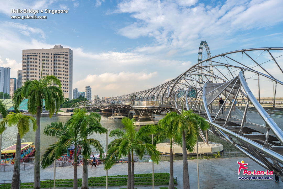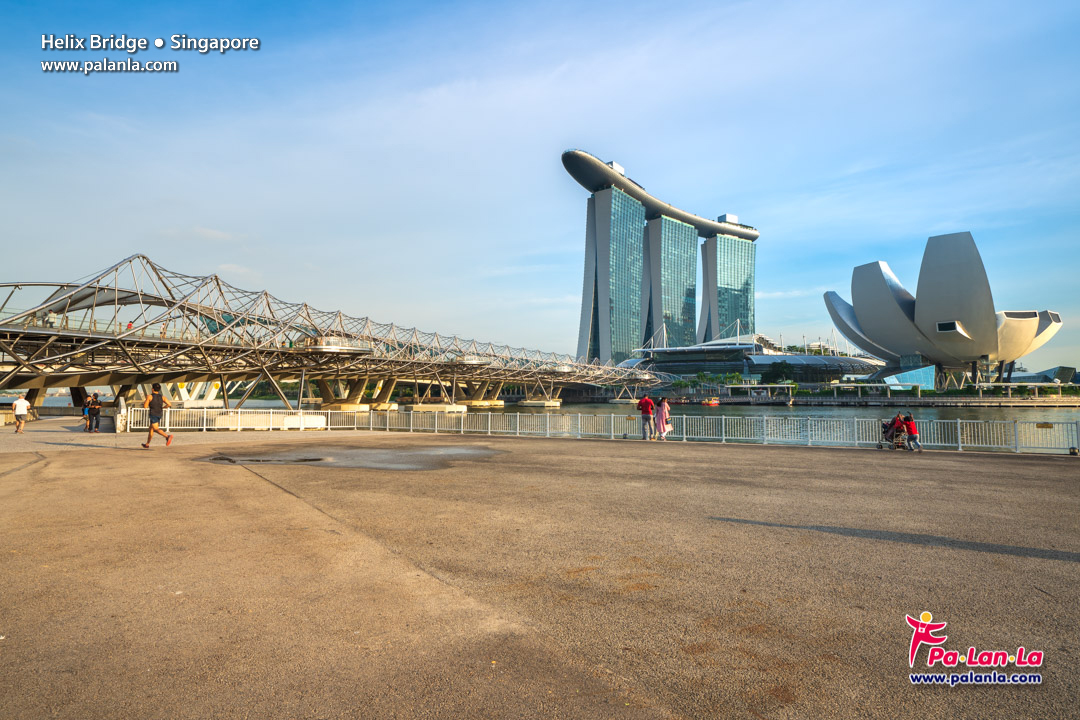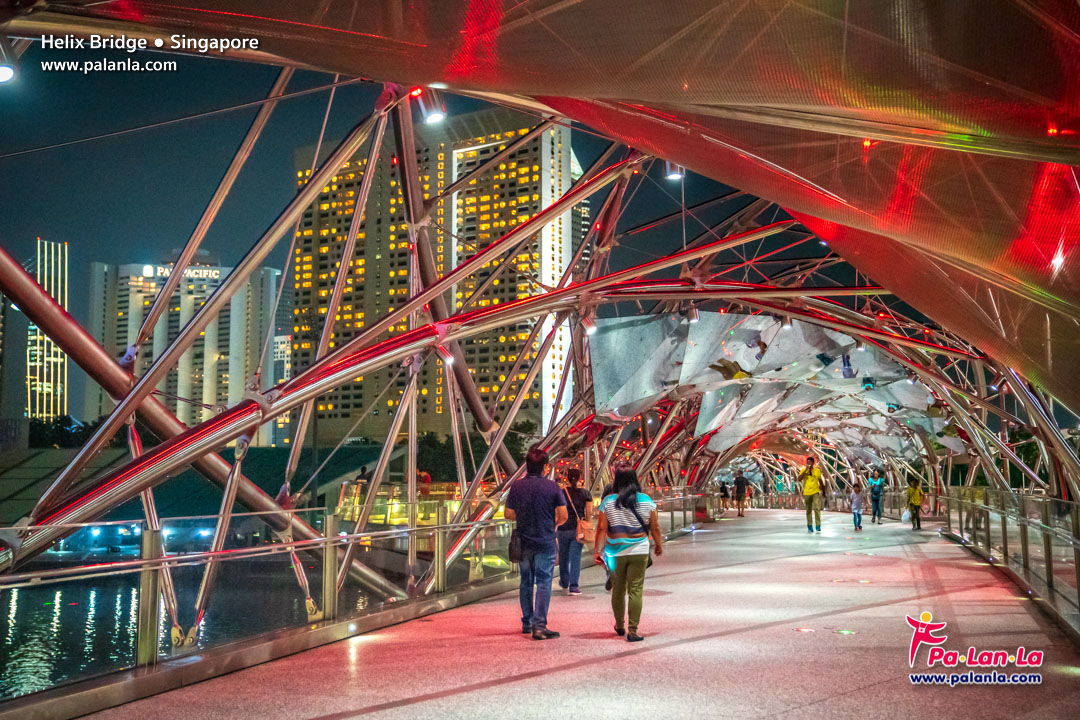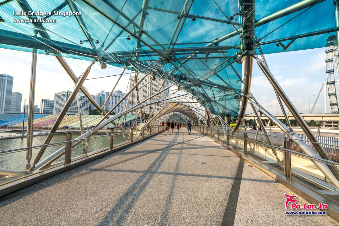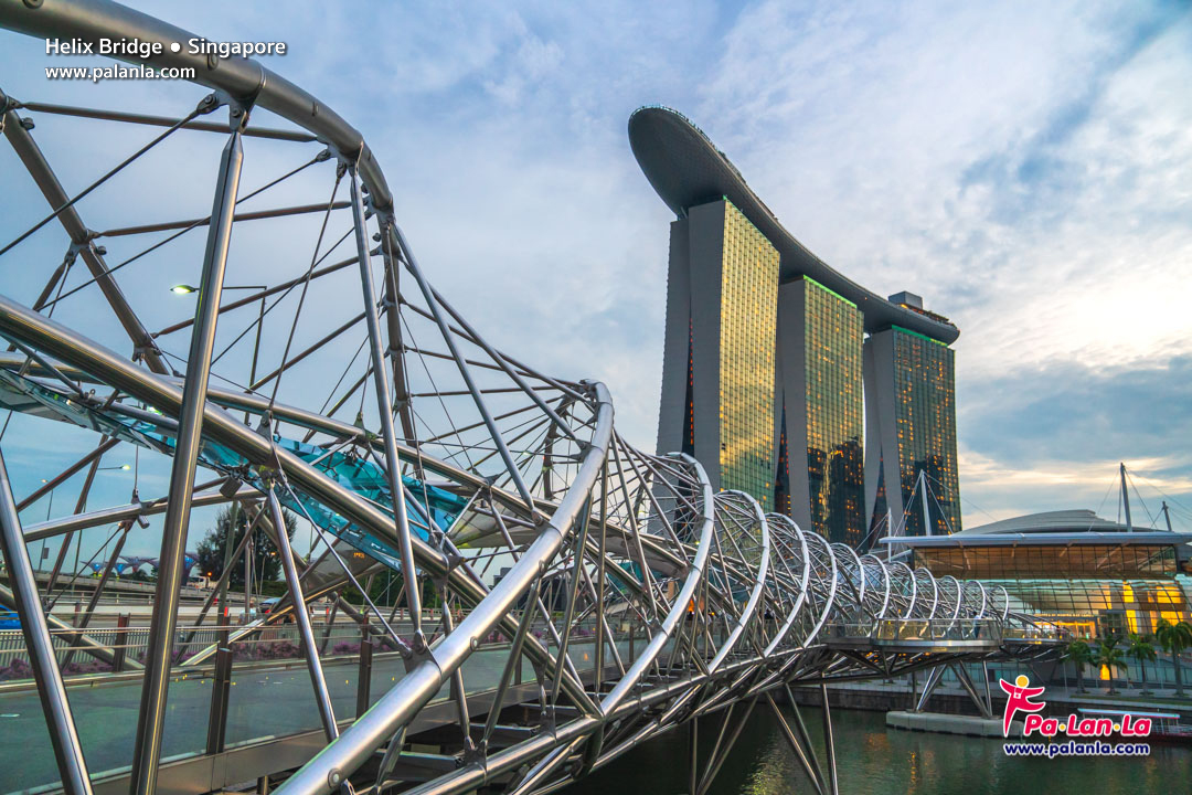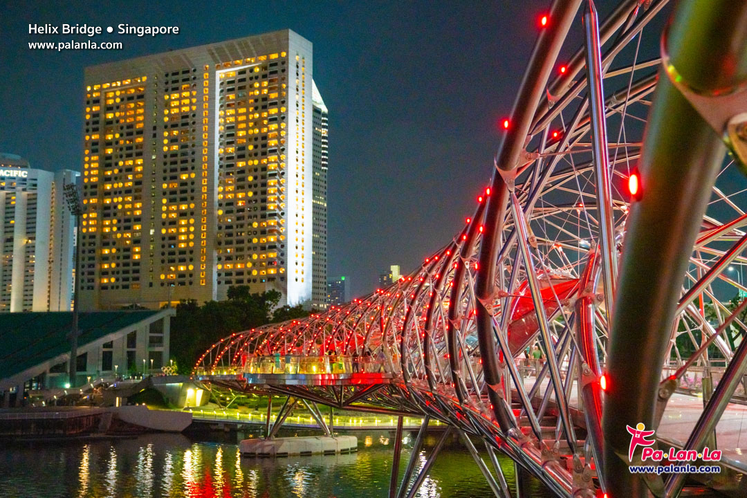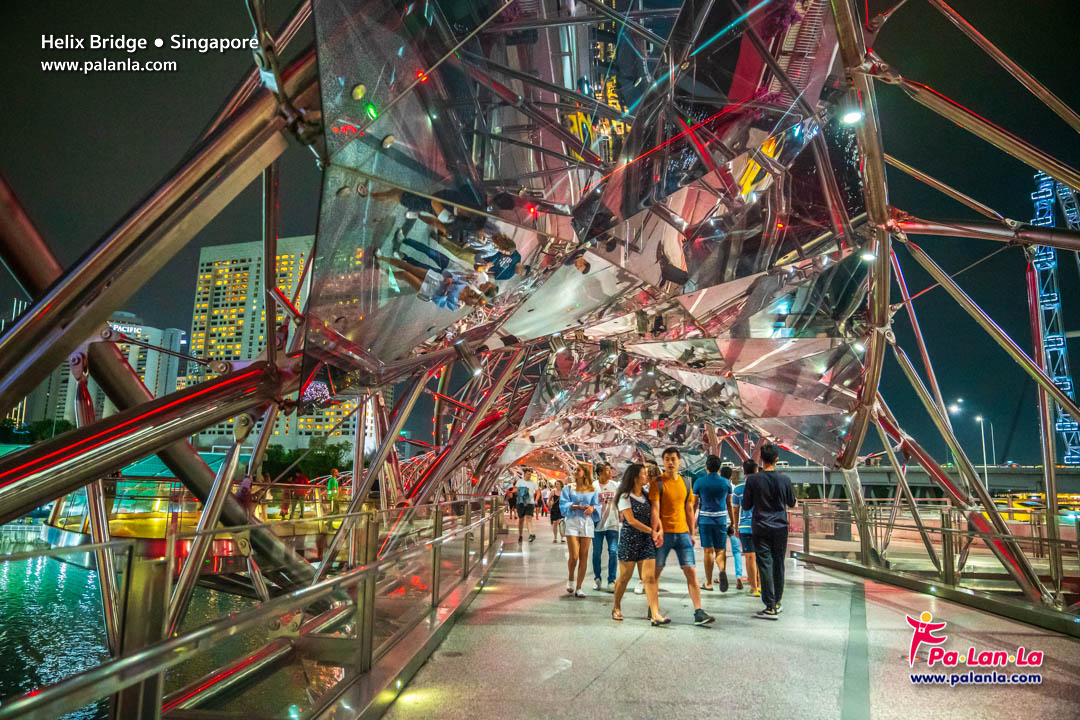 สะพานฮีลิกซ์ (Helix Bridge) เป็นสะพานเกลียวคู่แห่งแรกของโลกที่ได้รับแรงบันดาลใจมาจากโครงสร้างดีเอ็นเอของมนุษย์ นอกจากความสวยงามทางด้านสถาปัตยกรรมของสะพานแห่งนี้แล้ว ในช่วงค่ำจะมีการเปิดไฟสีต่างๆ ด้วย