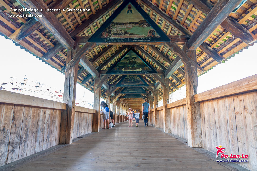 ชมภาพวาดเก่าแก่บนตัวสะพานที่บรรยายเหตุการณ์ต่างๆ ของเมืองลูเซิร์นย้อนไปถึงศตวรรษที่ 17 และชมหอคอยกลางน้ำสถาปัตยกรรมทรงแปดเหลี่ยมที่อยู่ช่วงกลางสะพาน
