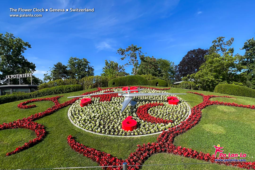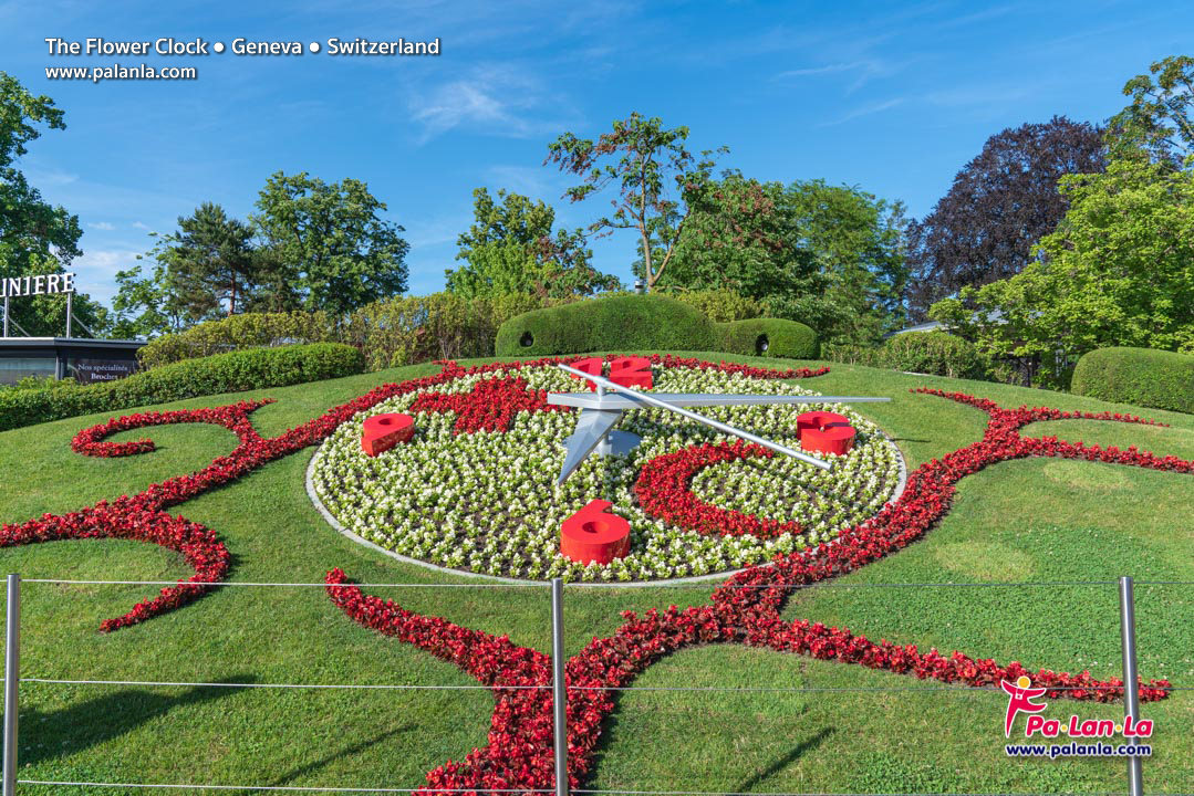 นาฬิกาดอกไม้ (The Flower Clock / L’horloge fleurie) หนึ่งในแลนด์มาร์คที่เป็นที่รู้จักมากที่สุดของเมืองเจนีวา และมีเข็มวินาทีที่ยาวที่สุดในโลก