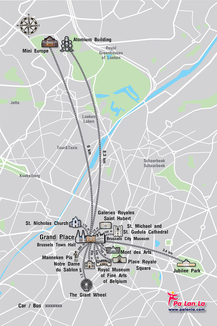 แผนที่ 15 สถานที่ท่องเที่ยวยอดนิยมในเมืองบรัสเซลส์