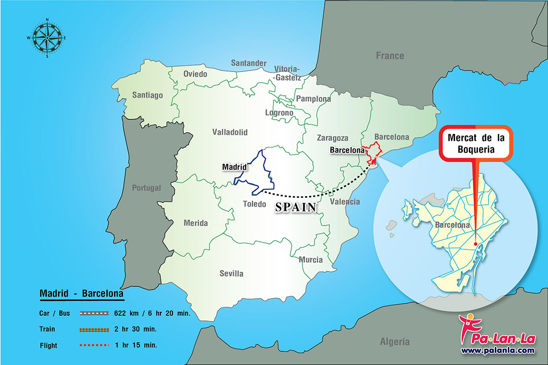 - ตลาดโบเกเรีย เมืองบาร์เซโลนา ประเทศสเปน