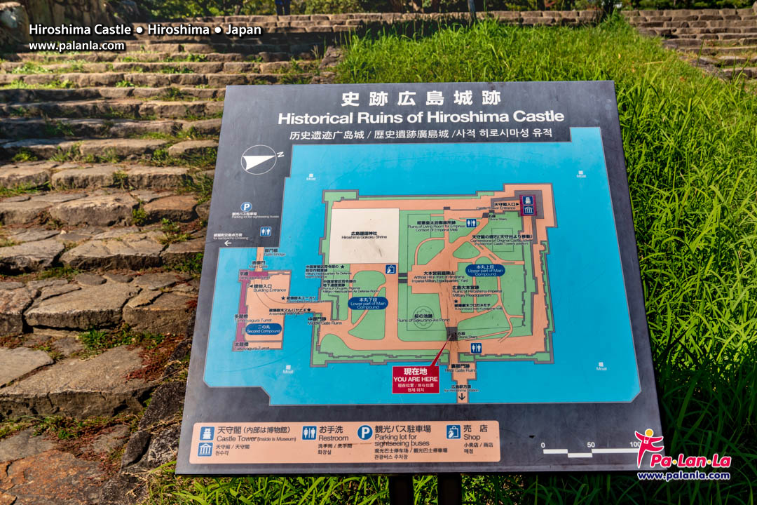 แผนผังภายในบริเวณโบราณสถานปราสาทฮิโรชิมะ