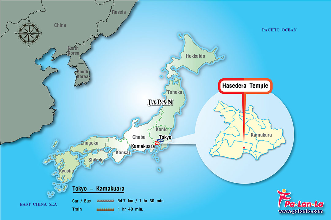 แผนที่ตั้ง วัดฮาเสะเดระ (Hasedera Temple) เมืองคามาคุระ ประเทศญี่ปุ่น