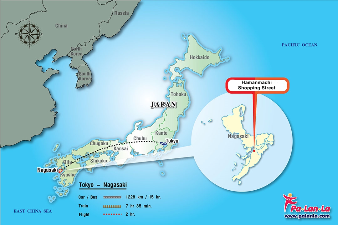 การเดินทางจากสถานีรถไฟนางาซากิไปย่านฮะมันมาจิ