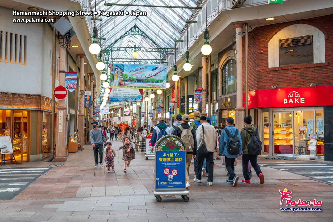 ย่านฮะมันมาจิ (Hamanmachi Shopping Street) ถนนสายช้อปปิ้งใจกลางเมืองนางาซากิกับร้านค้ามากกว่า 700 ร้าน ให้นักท่องเที่ยวได้ใช้เวลาสองสามชั่วโมงหรือทั้งวันเพลิดเพลินไปกับร้านรวงต่างๆ ที่ดึงดูดตาดึงดูดใจ