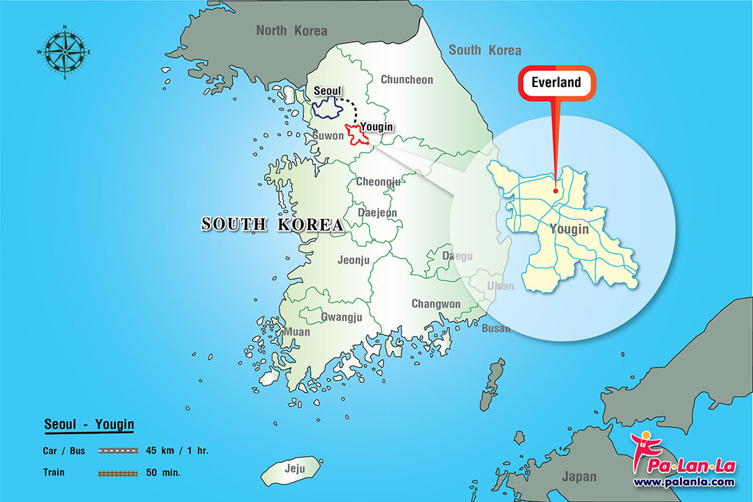 แผนที่ตั้ง เอเวอร์แลนด์ (Everland) เมืองยงอิน ประเทศเกาหลีใต้