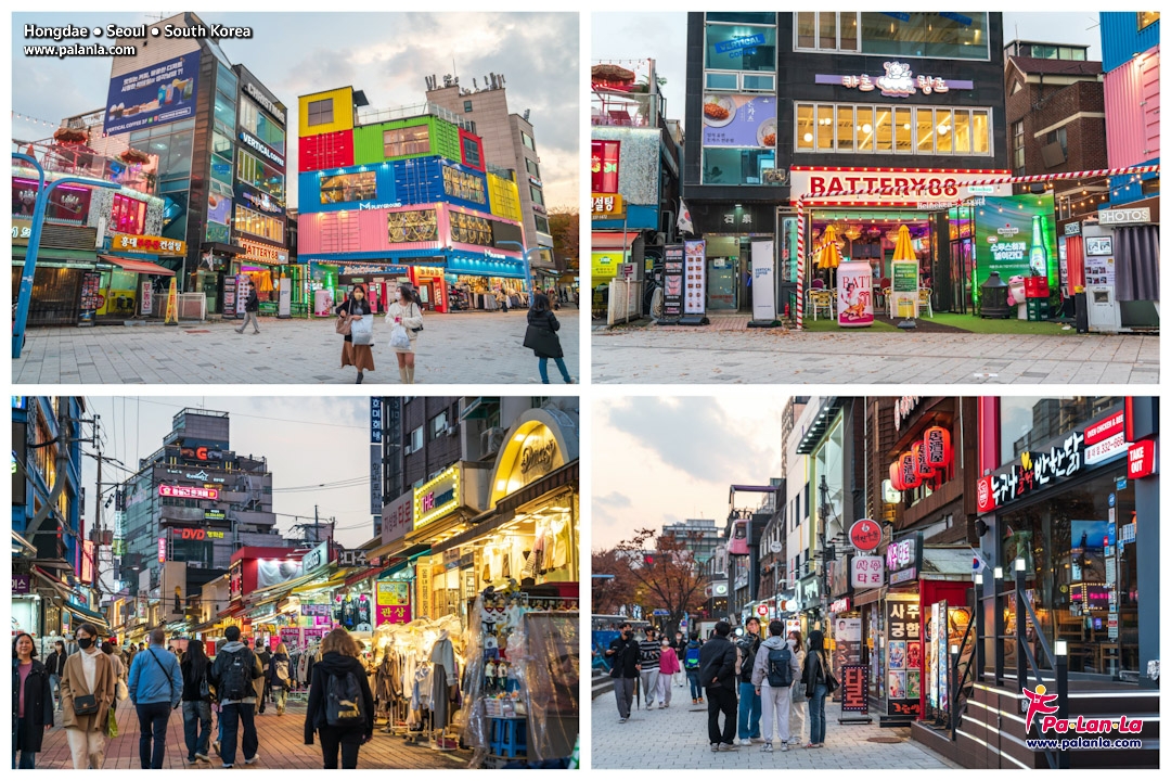 ย่านฮงแด (Hongdae) เป็นย่านศูนย์รวมวัยรุ่นอีกแห่งหนึ่งใจกลางกรุงโซลเพราะตั้งอยู่ใกล้กับมหาวิทยาลัยฮงอิก ที่นี่เป็นถนนคนเดินที่คึกคักและมีเอกลักษณ์จากสตรีทอาร์ตที่ตกแต่งในพื้นที่อยู่เป็นระยะ เพราะที่นี่เป็นบริเวณที่จัด Street Art Festival อันโด่งดังของกรุงโซล ย่านฮงแดจึงเป็นสถานที่ที่เหมาะกับการพบปะสังสรรค์ และเดินชอปปิงสินค้าแฟชั่นที่มีให้เลือกอย่างหลากหลาย อีกทั้งยังมีร้านอาหารและคาเฟ่ที่ตกแต่งอย่างมีเอกลักษณ์อีกด้วย