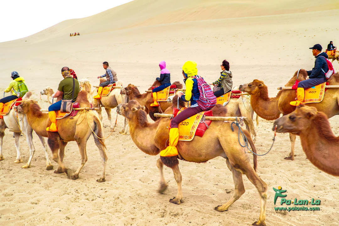ซึ่งการนั่งอูฐนี้มีเส้นทางการเดินทางเฉพาะรอบเนินทรายกระซิบไม่ไกลจากทะเลสาบพระจันทร์เสี้ยวนัก รวมเป็นระยะทางทั้งหมด 4 กิโลเมตร