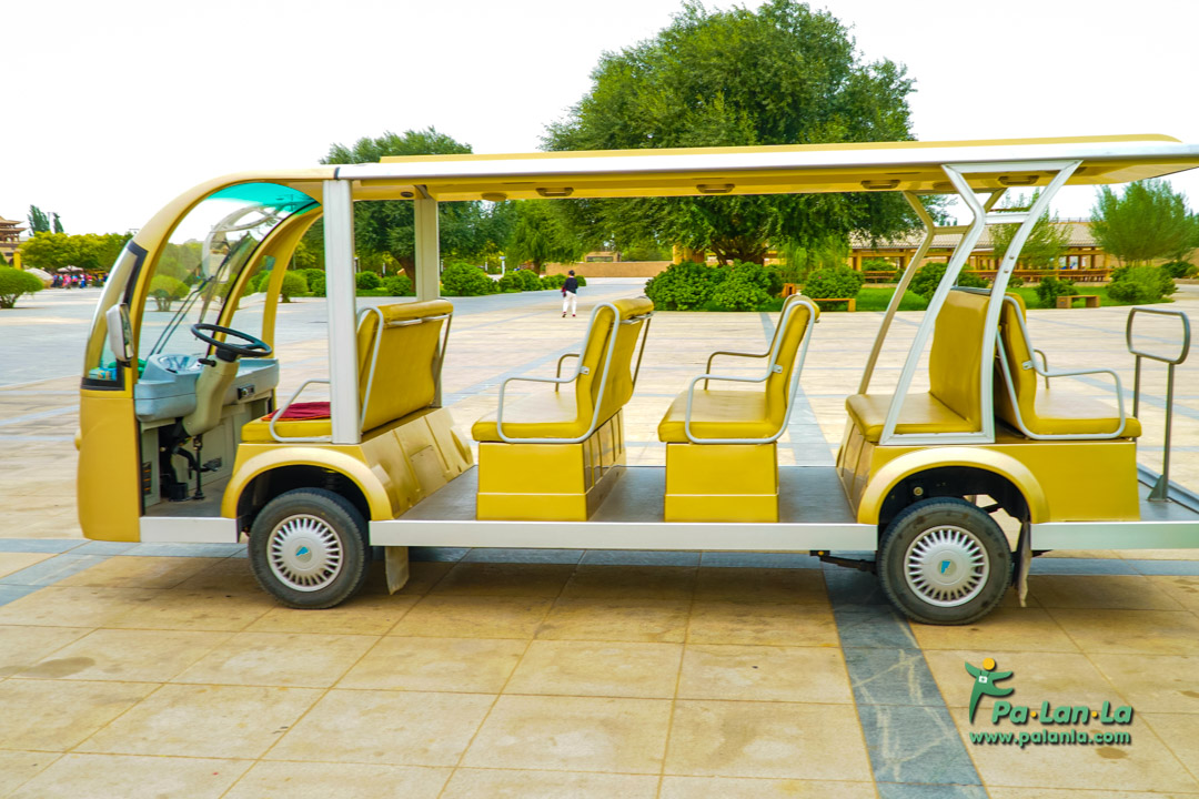 - รถไฟฟ้า รถไฟฟ้าขนาดเล็กบริการนักท่องเที่ยว มีเส้นทางการวิ่งบนถนนคอนกรีตจากปากทางเข้า ก่อนจอดส่งนักท่องเที่ยวที่สุดปลายทางถนนใกล้กับทะเลสาบพระจันทร์เสี้ยว โดยมีอัตราค่าบริการไปกลับคือ 20 หยวน/คน หรือ 10 หยวน/คน/เที่ยว