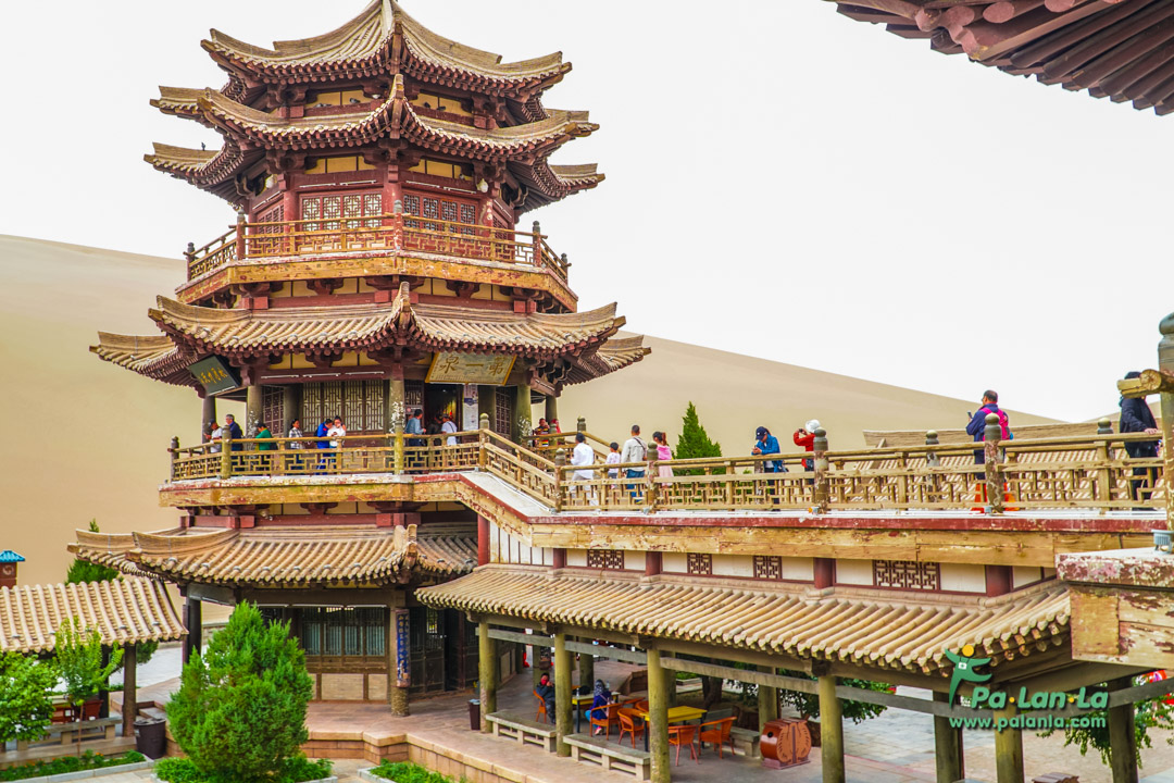 ปัจจุบันภายใต้การสนับสนุนการท่องเที่ยวของรัฐบาลจีน ได้มีการกั้นเขตเพื่อดูแลทะเลสาบพระจันทร์เสี้ยว และยังมีการก่อสร้างอาคารทรงโบราณรวมถึงวัดที่เต็มไปด้วยศิลปะเฉพาะของจีนโบราณ เพื่อเป็นที่พักผ่อนและเสริมสร้างบรรยากาศให้กับนักท่องเที่ยวที่ตั้งใจมาเยือนทะเลสาบพระจันทร์เสี้ยวนี้