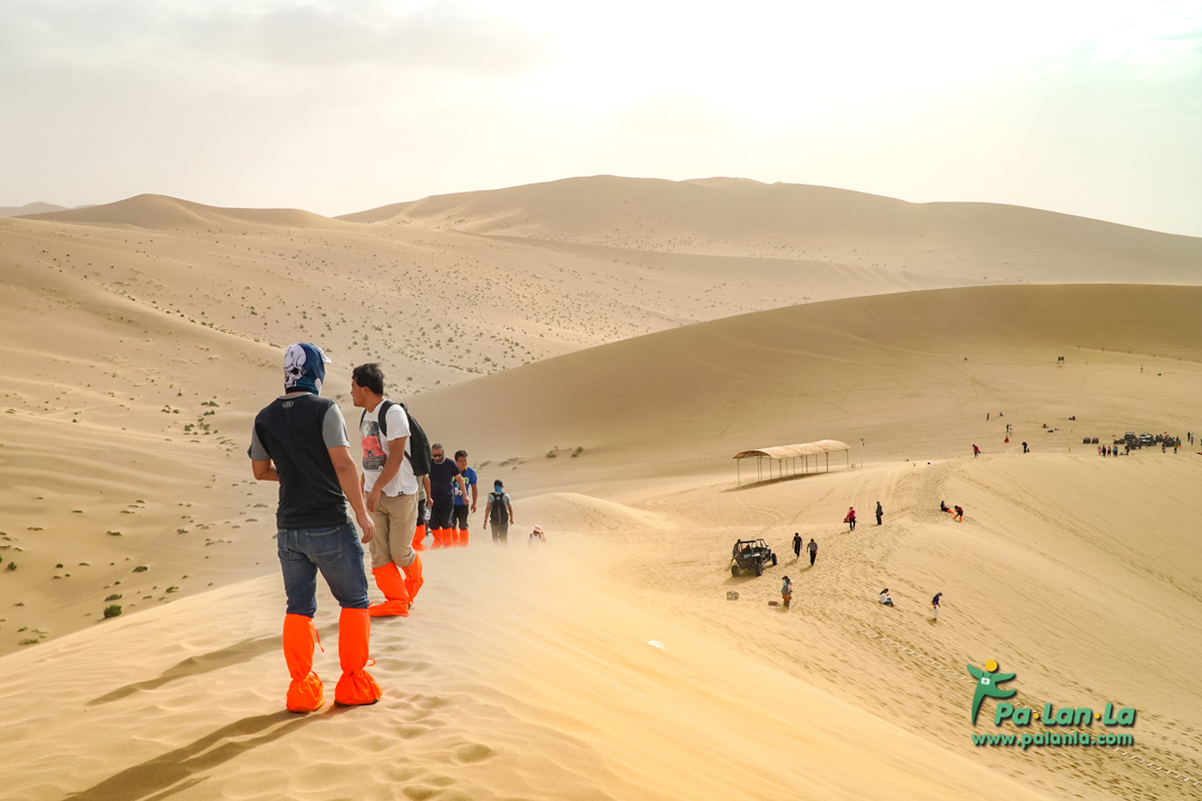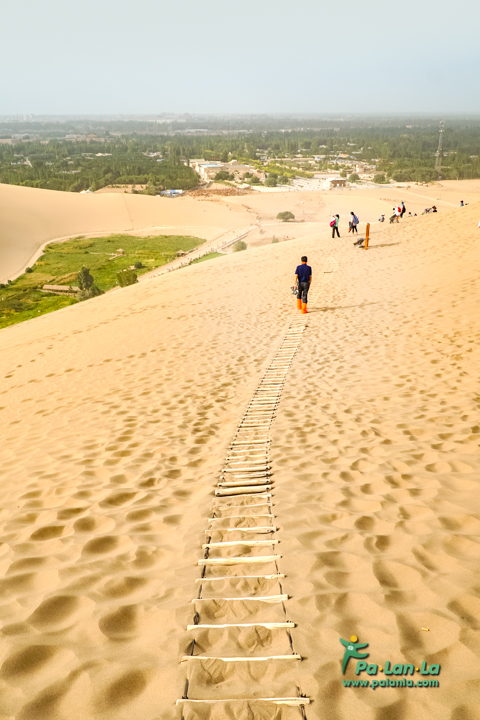 บันไดสำหรับเดินขึ้นบนเนินทราย หากเดินนอกเส้นทางอาจถอยลงมาอยู่ที่เดิมได้