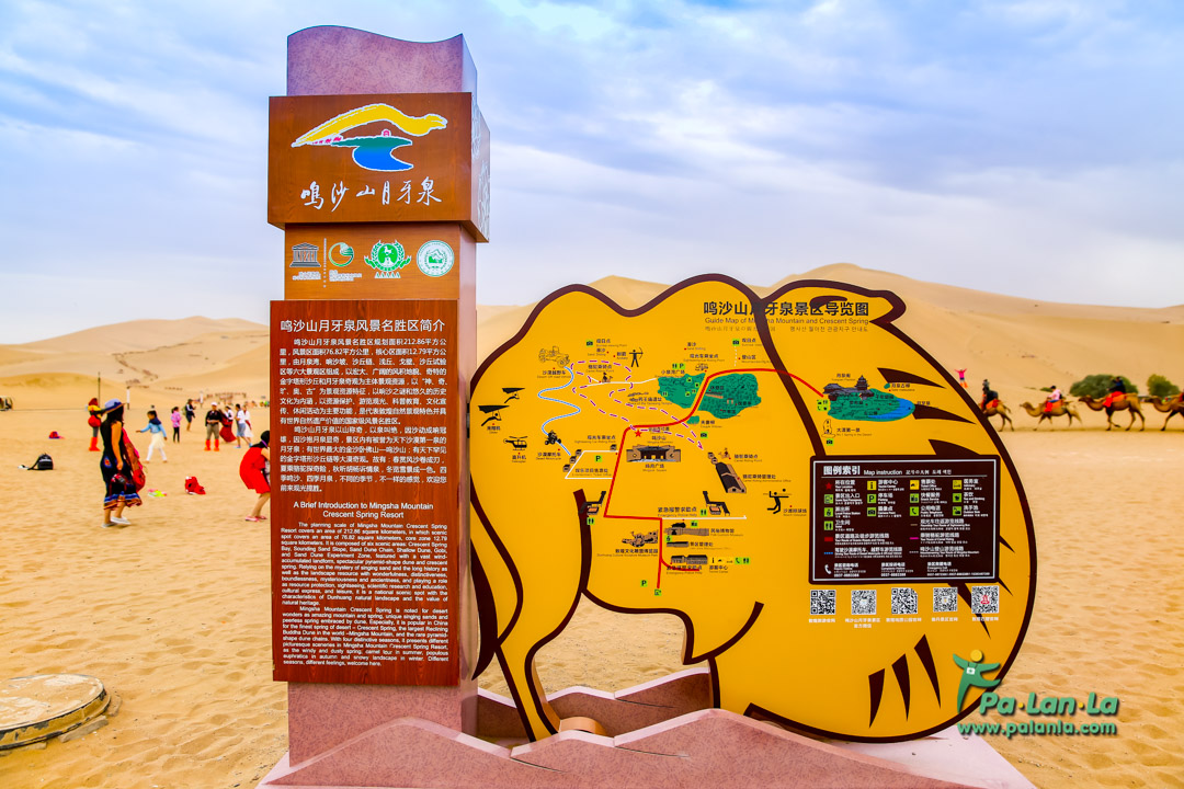 นักท่องเที่ยวที่มาเที่ยวชมทะเลสาบพระจันทร์เสี้ยว สามารถซื้อบัตรผ่านเข้าชมทั้งสองสถานที่ได้ใน ราคา 120 หยวน/คน ในเดือนพฤษภาคม – เดือนตุลาคม ซึ่งเป็นฤดูกาลท่องเที่ยว และครึ่งราคา 60 หยวน/คน สำหรับเดือนพฤศจิกายน – เดือนเมษายนซึ่งถือว่าอยู่นอกฤดูกาลท่องเที่ยว