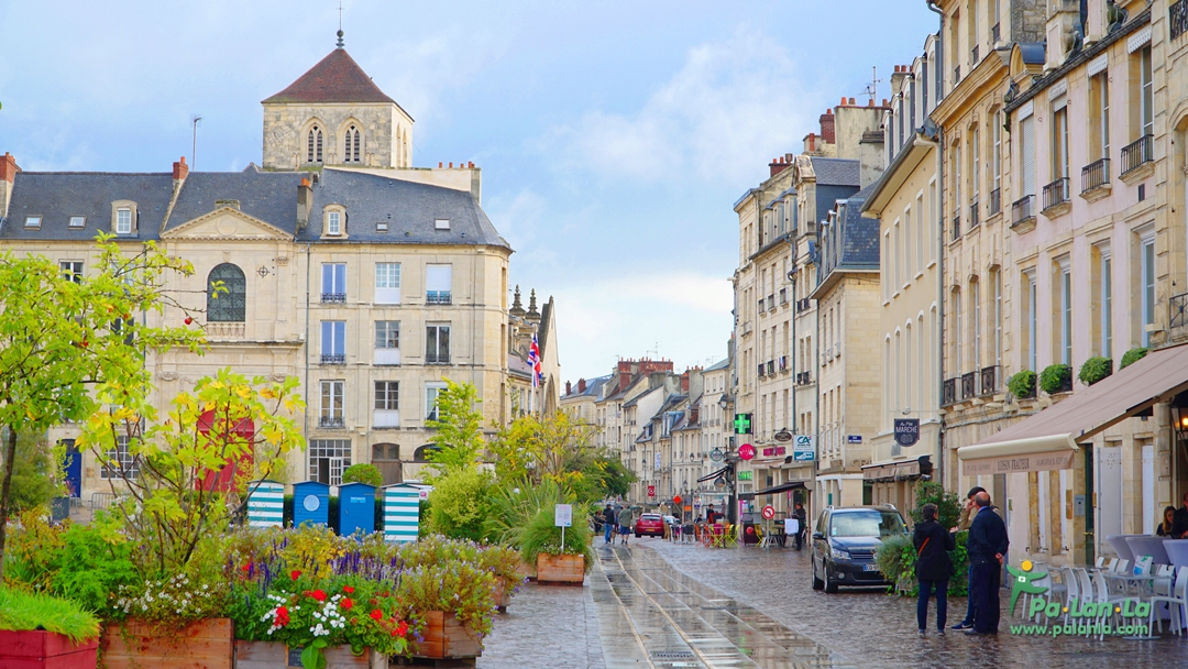 ท้องฟ้าที่แจ่มใสของเมืองก็องซึ่งเป็นฉากหลังที่สวยงามตัดกับสีอาคารเก่า