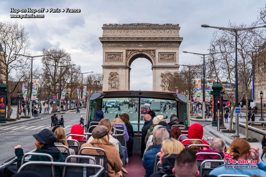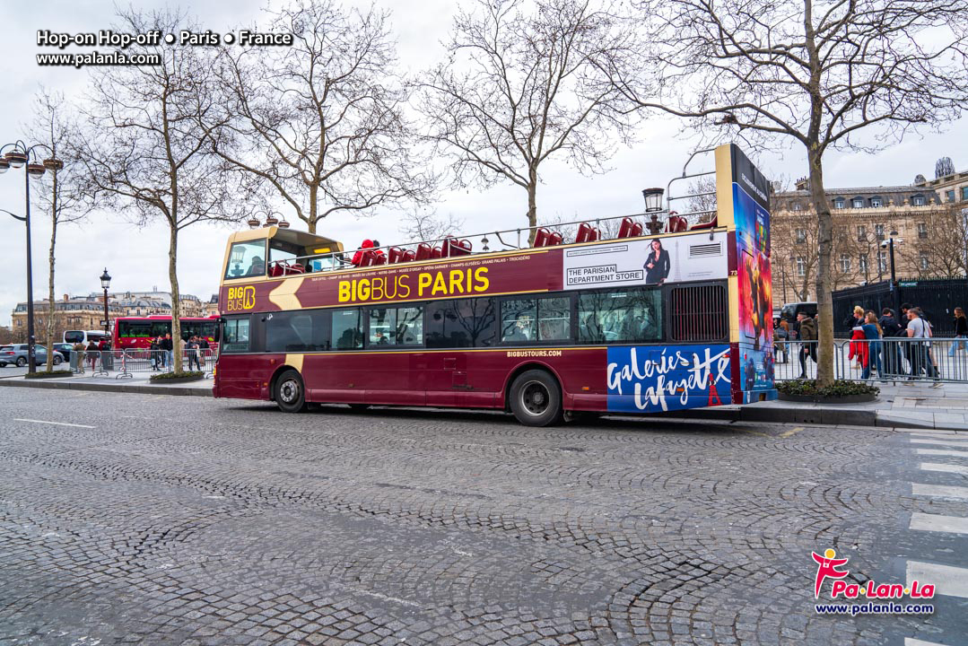 Hop-on Hop-off เป็น บริการรถบัส 2 ชั้น โดยชั้นบนเปิดประทุน วิ่งวนตามเส้นทางที่ผ่านแหล่งท่องเที่ยวสำคัญต่างๆในเมืองปารีส อาทิ พิพิธภัณฑ์ลูฟวร์, หอไอเฟล, ประตูชัยแห่งฝรั่งเศส และถนนช็องเซลีเซ่ ฯลฯ ทำให้นักท่องเที่ยวสามารถเก็บภาพสถานที่ท่องเที่ยวสำคัญเหล่านี้ได้อย่างชัดเจนจากมุมมองด้านบนของตัวรถ หรือหากนักท่องเที่ยวสนใจ สามารถเลือกลงที่จุดจอดตามแหล่งท่องเที่ยวต่างๆเพื่อเที่ยวชมและเก็บภาพเพิ่มเติมได้ และหลังจากเที่ยวเสร็จ นักท่องเที่ยวสามารถเดินกลับมาที่ป้ายจุดจอด Hop-on Hop-off เพื่อรอขึ้นรถคันใหม่ที่จะวิ่งวนทั้งวันทุก 7 - 15 นาที (เวลาอาจแตกต่างกันเล็กน้อยตามเส้นทางการให้บริการ)