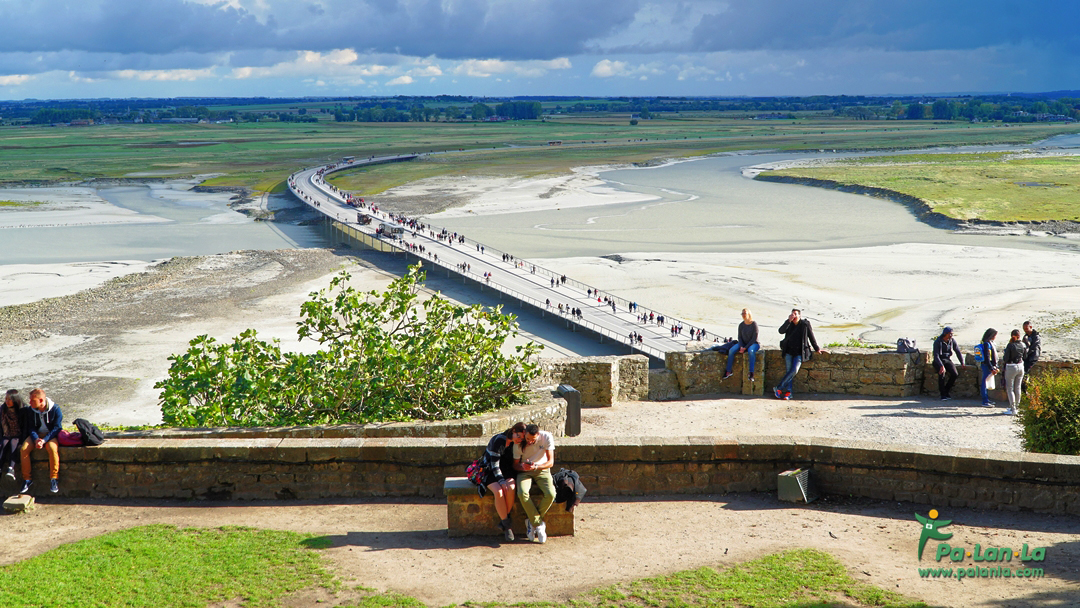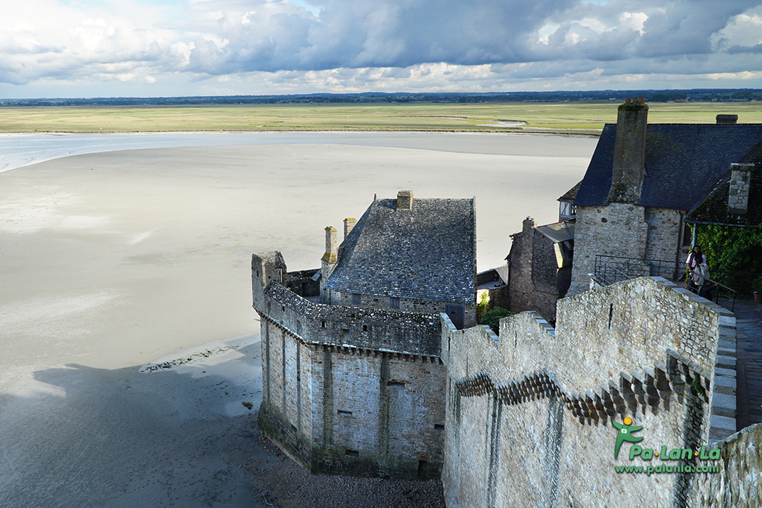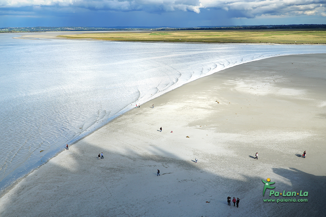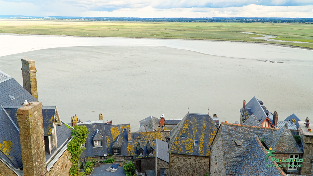 มหาวิหารมง-แซง-มีแชลเมื่อมองจากชายฝั่งจะเห็นสายน้ำที่ไหลลงสู่ท้องทะเล