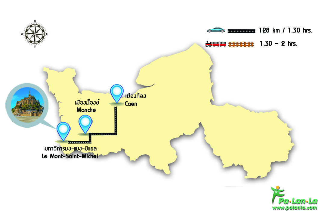 การเดินทางไปมหาวิหารมง-แซง-มีแชล โดยผ่านทางเมืองม็องช์