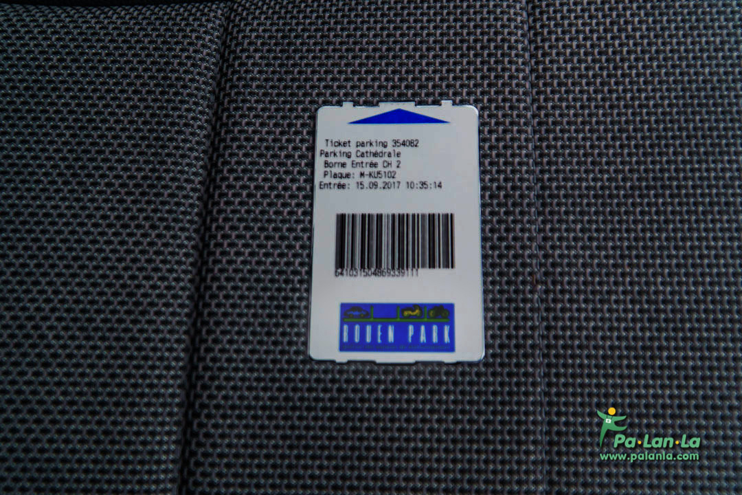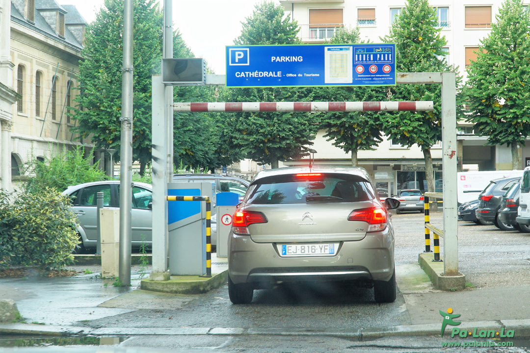ลานจอดรถใกล้มหาวิหารแห่งรูอ็องซึ่งเป็นแบบเครื่องบันทึกเวลาเข้า-ออก