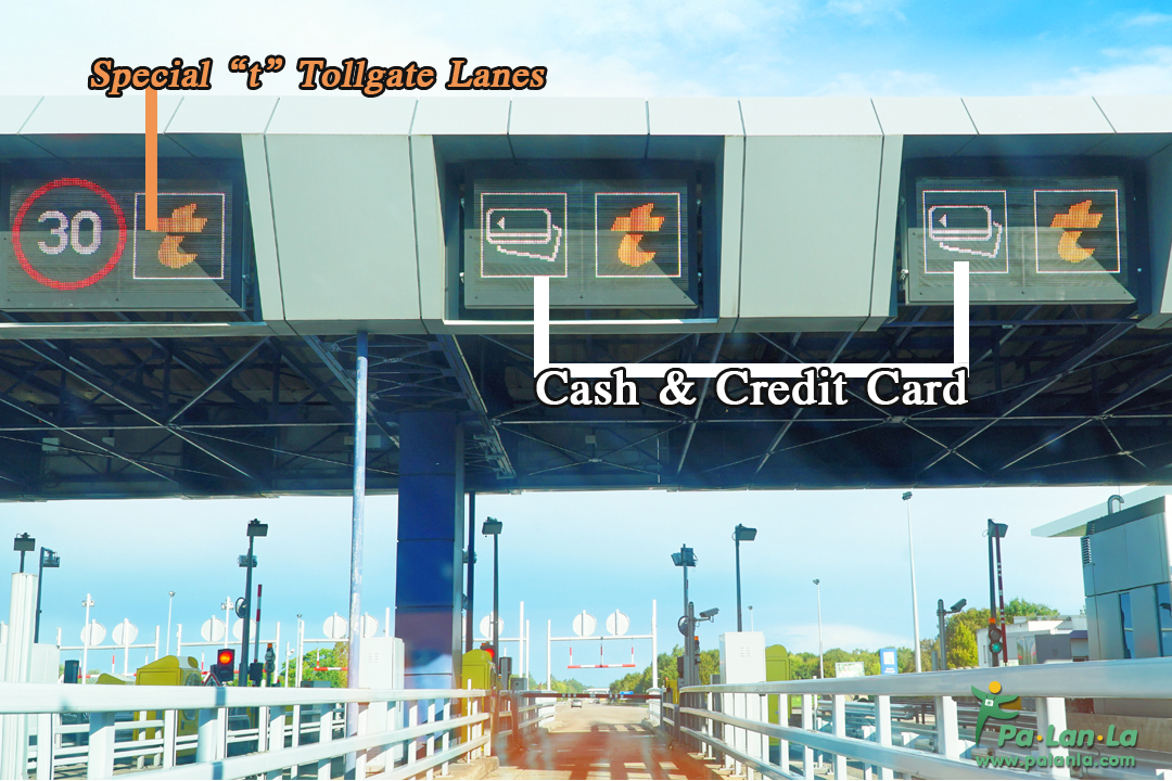 ช่องชำระค่าบริการ toll way ของประเทศฝรั่งเศส โดยช่องที่มีรูปสี่เหลี่ยมเรียงซ้อนกันหมายถึงรับชำระทั้งเงินสดและบัตรเครดิต
