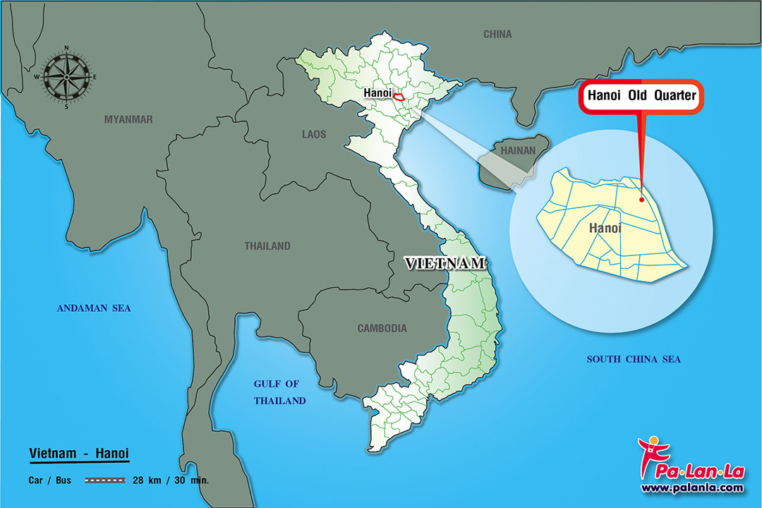 แผนที่ตั้ง ย่านฮานอยโอลด์ควอเตอร์ (Hanoi Old Quarter) กรุงฮานอย ประเทศเวียดนาม