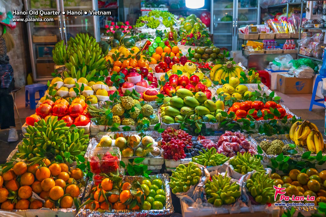 แผงจำหน่ายผลไม้ตามฤดูกาลภายในย่านเมืองเก่า