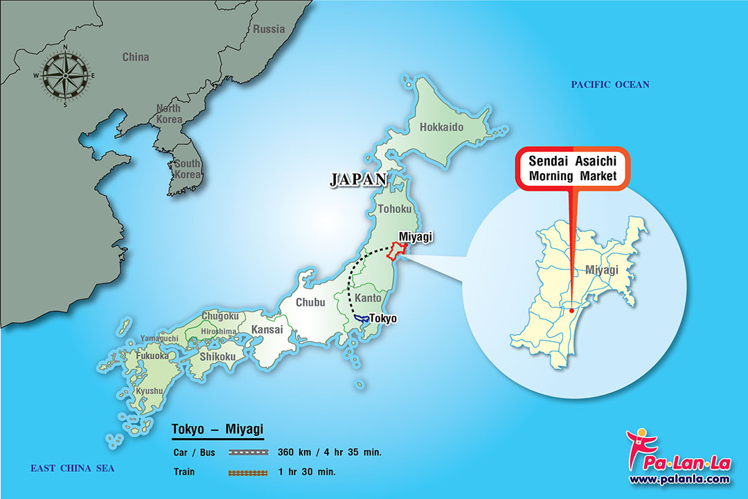 - ตลาดเช้าเซนไดอาไซจิ จังหวัดมิยางิ ประเทศญี่ปุ่น
