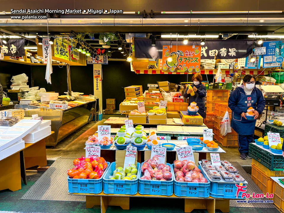 ร้านขายผลไม้ภายในตลาดเช้าเซนไดอาไซจิ